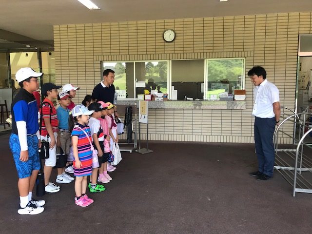 で(公)全日本ゴルフ練習場連盟公認のジュニアゴルファー検定会が開催されました!まずは支配人にご挨拶から始まります。エチケット、マナー、ルールのペイパーテスト。今回は上は中学2年生から下は幼稚園児の年長まで幅広く10名が参加。レベルによって検定内容が異なります。挨拶で始まり、挨拶で終わりしっかりマナーを守るがモットー。今回は12級から1級まで全員がそれぞれのレベルで合格!