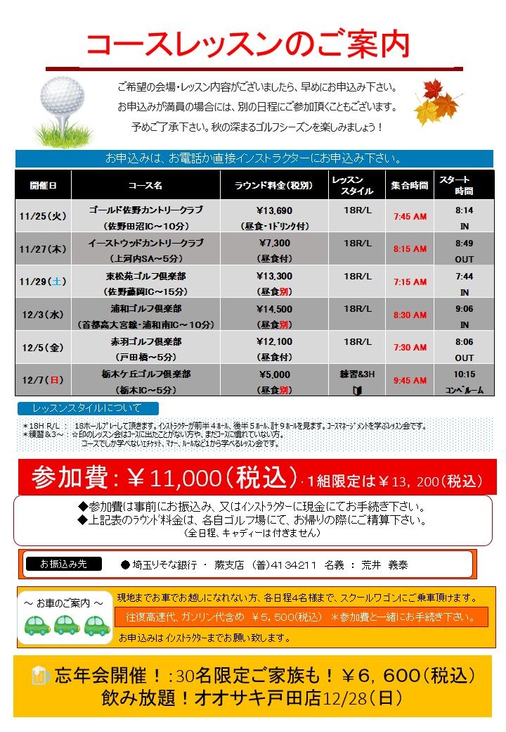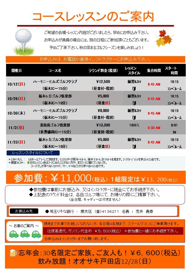 コースに出て、さらに実践的なゴルフを学ぶ良いチャンスです!